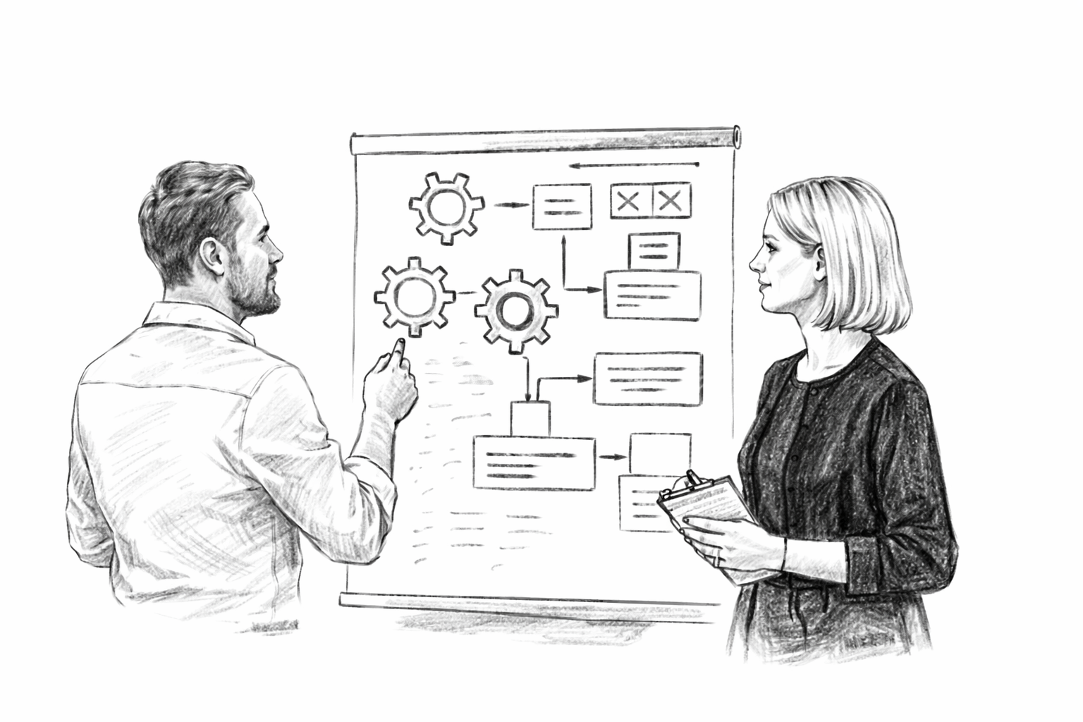Am Anfang steht kein Tool, sondern ein gemeinsames Verständnis der bestehenden Abläufe. Wir betrachten Prozesse, Verantwortlichkeiten und Informationsflüsse dort, wo Zeit verloren geht oder Wissen fragmentiert ist.